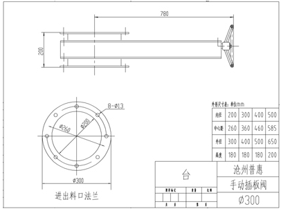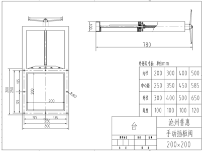 手動(dòng)插板閥與圓形法蘭插板閥的外形尺寸圖
